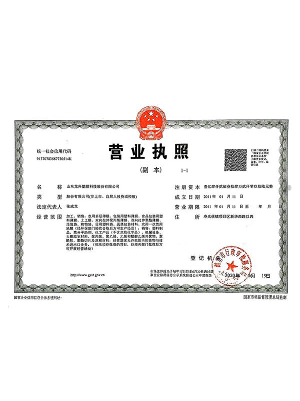 山東龍興塑膜科技股份有限公司前身為山東壽光龍興農(nóng)膜有限公司組建于2011年,2018年10月重組,目前是壽光市國有控股公司、高新技術(shù)企業(yè),是專業(yè)生產(chǎn)高檔農(nóng)用薄膜、工業(yè)用薄膜的企業(yè),是一家以產(chǎn)品制造為主,集科研開發(fā)、產(chǎn)品設(shè)計(jì)、技術(shù)服務(wù)于一體的綜合性企業(yè)。公司現(xiàn)有職工228人,各類工程技術(shù)人員97人,管理人員20余人,注冊(cè)資金14234.2096萬元,總資產(chǎn)102314萬元,目前是壽光市國有控股公司、高新技術(shù)企業(yè)。公司是中國塑料加工工業(yè)協(xié)會(huì)農(nóng)膜專業(yè)委員會(huì)會(huì)員單位,中國復(fù)合材料工業(yè)協(xié)會(huì)會(huì)員單位,中國塑料加工工業(yè)協(xié)會(huì)雙向拉伸聚酯薄膜專業(yè)委員會(huì)會(huì)員單位...
